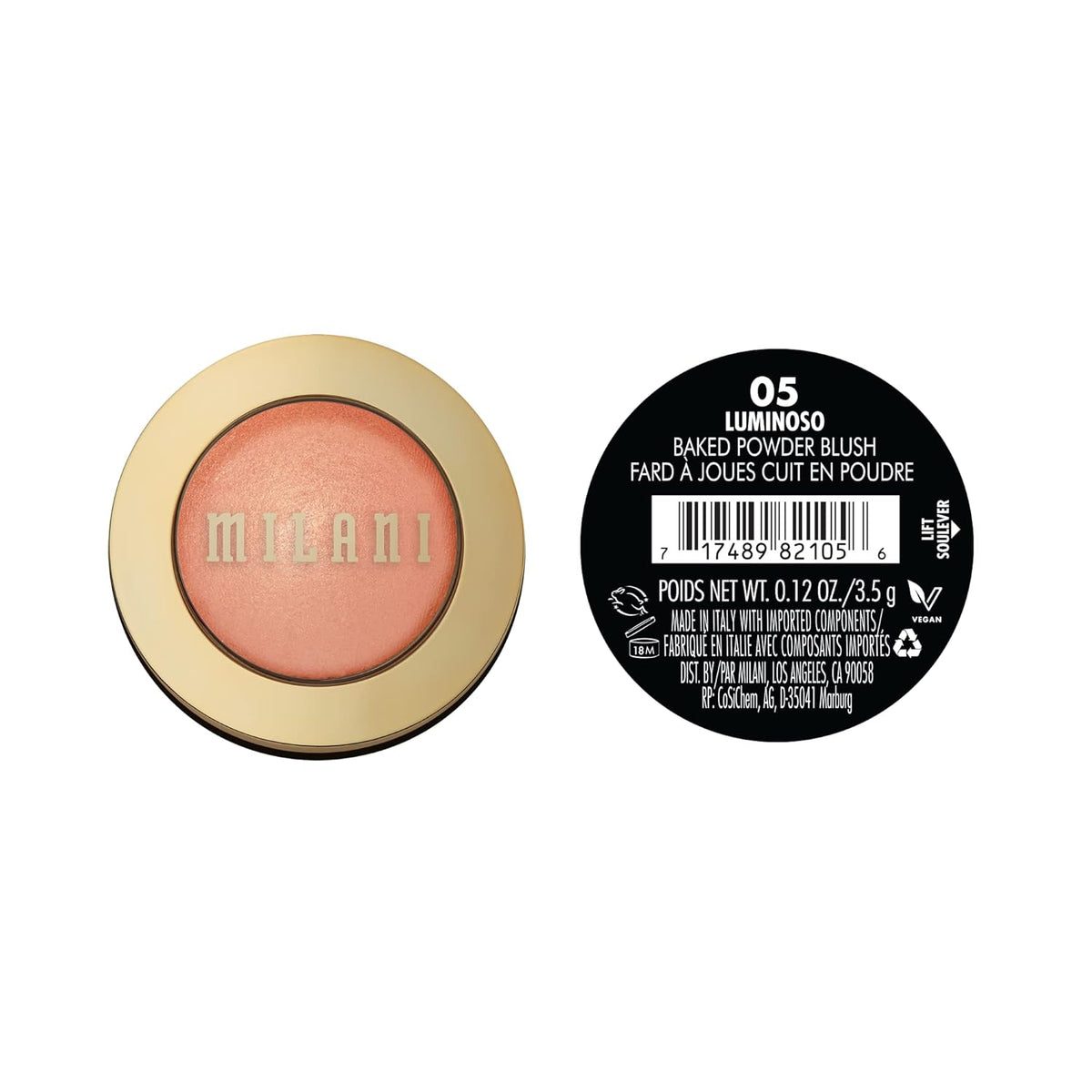 Milani Baked Blush, Powder Blush for Cheeks, Cruelty Free Makeup - Shape, Contour & Highlight Face for a Shimmery or Matte Finish -Luminoso